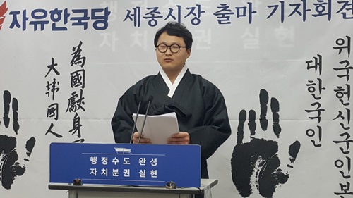 ÀÚÀ¯Çѱ¹´ç ¼Ò¼ÓÀΠȫâȣ(41) ¾¾°¡ 29ÀÏ ¿ÀÀü 11½Ã ¼¼Á¾½Ãû ºê¸®Çη뿡¼­ ±âÀÚȸ°ßÀ» ¿­°í ¼¼Á¾½ÃÀå Ã⸶¸¦ ¼±¾ðÇß´Ù.